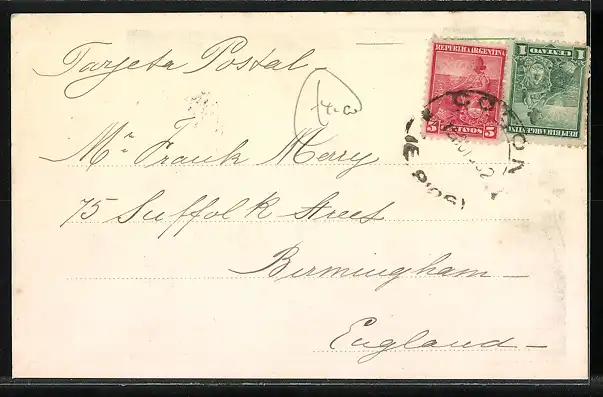 gelaufen 1902, Eckknick oben li., guter Zustand