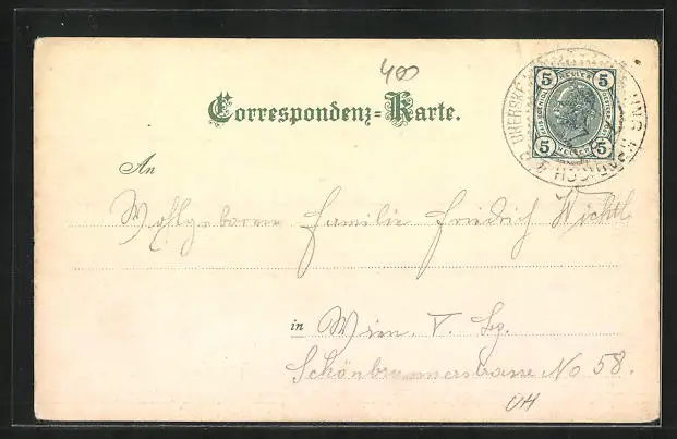Personenbezogene Daten auf der Rückseite der Karte wurden durch blauen Textmarker unkenntlich gemacht. Die blauen Stellen sind auf die Vorderseite durchgeweicht und wirken sich negativ auf das Postkartenfoto aus