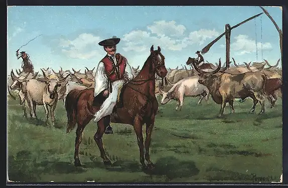 AK Ungarischer Rinderhirte auf seinem Pferd
