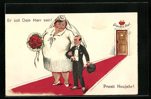 AK Ungleiches Paar beim Standes-Amt, Neujahrsgruss