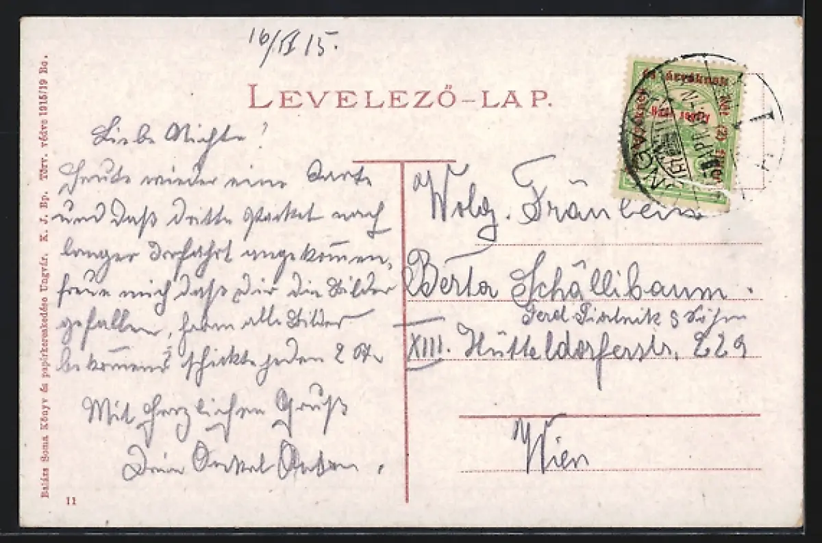 Personenbezogene Daten auf der Rückseite der Karte wurden durch blauen Textmarker unkenntlich gemacht. Die blauen Stellen sind auf die Vorderseite durchgeweicht und wirken sich negativ auf das Postkartenfoto aus