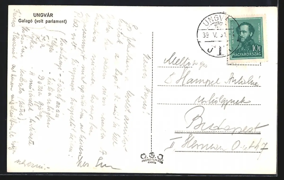 Personenbezogene Daten auf der Rückseite der Karte wurden durch blauen Textmarker unkenntlich gemacht. Die blauen Stellen sind auf die Vorderseite durchgeweicht und wirken sich negativ auf das Postkartenfoto aus