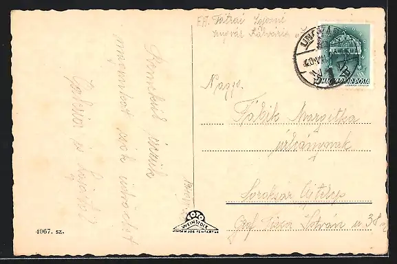 Personenbezogene Daten auf der Rückseite der Karte wurden durch blauen Textmarker unkenntlich gemacht. Die blauen Stellen sind auf die Vorderseite durchgeweicht und wirken sich negativ auf das Postkartenfoto aus