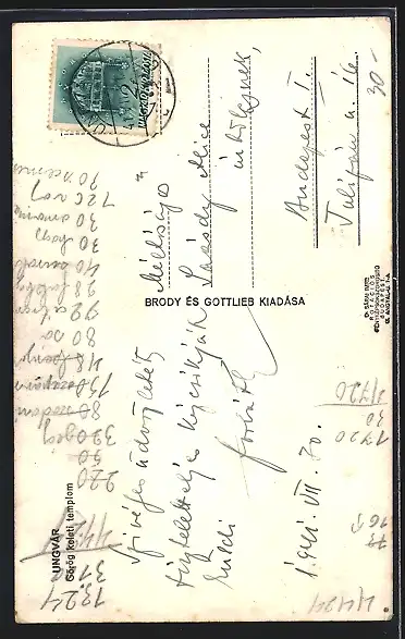 Personenbezogene Daten auf der Rückseite der Karte wurden durch blauen Textmarker unkenntlich gemacht. Die blauen Stellen sind auf die Vorderseite durchgeweicht und wirken sich negativ auf das Postkartenfoto aus