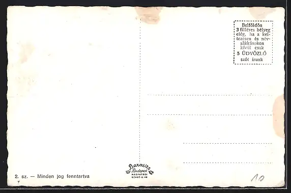Personenbezogene Daten auf der Rückseite der Karte wurden durch blauen Textmarker unkenntlich gemacht. Die blauen Stellen sind auf die Vorderseite durchgeweicht und wirken sich negativ auf das Postkartenfoto aus