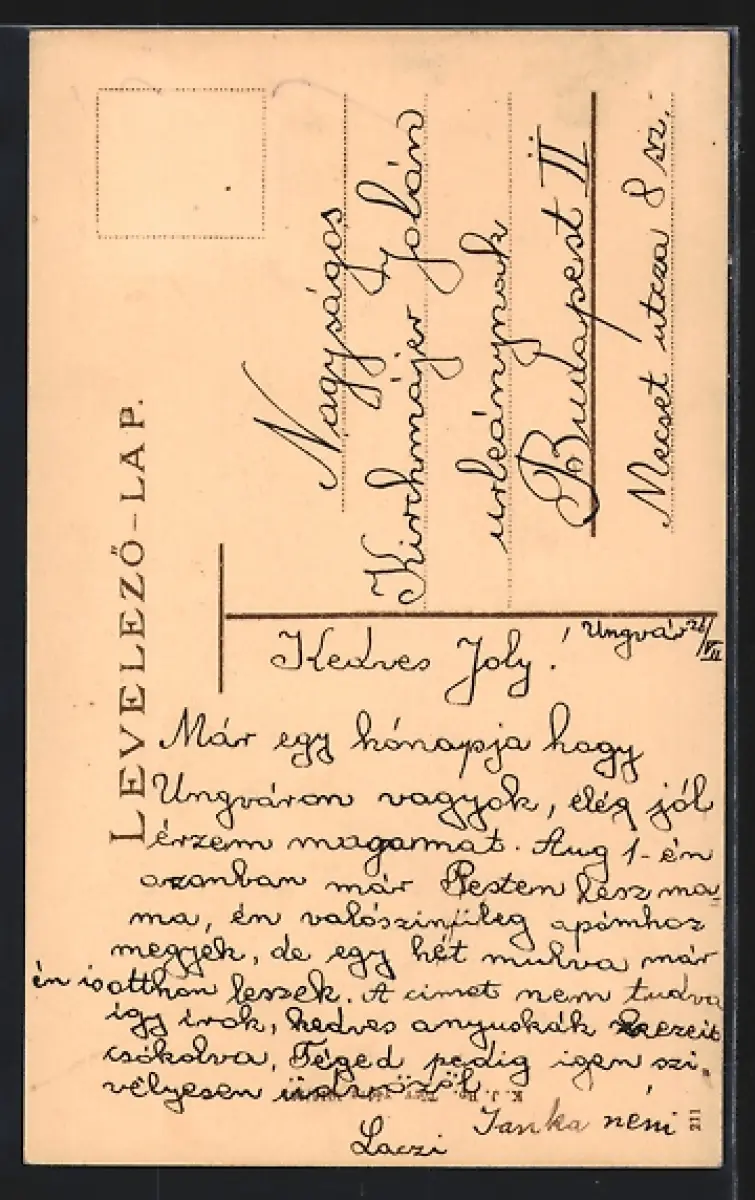 Personenbezogene Daten auf der Rückseite der Karte wurden durch blauen Textmarker unkenntlich gemacht. Die blauen Stellen sind auf die Vorderseite durchgeweicht und wirken sich negativ auf das Postkartenfoto aus