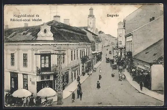 AK Ungvár, Nagyhid-utcai és, Rákóczi részlet