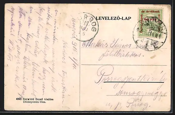 Personenbezogene Daten auf der Rückseite der Karte wurden durch blauen Textmarker unkenntlich gemacht. Die blauen Stellen sind auf die Vorderseite durchgeweicht und wirken sich negativ auf das Postkartenfoto aus