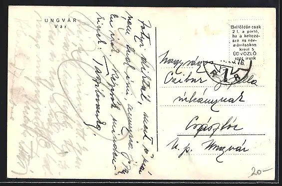 Personenbezogene Daten auf der Rückseite der Karte wurden durch blauen Textmarker unkenntlich gemacht. Die blauen Stellen sind auf die Vorderseite durchgeweicht und wirken sich negativ auf das Postkartenfoto aus