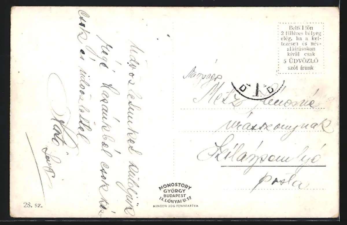 alte Ansichtskarte, gelaufen, Briefmarke entfernt, guter Zustand