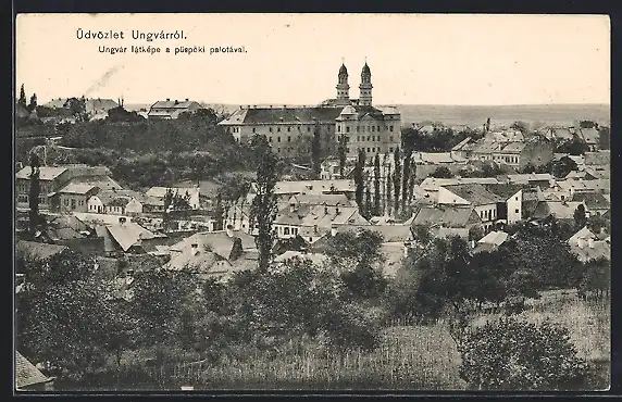 AK Ungvár, Ungvár látképe a püspöki palotával