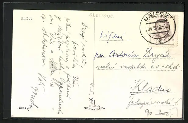 AK Unicov, auf dem Hauptplatz in der Stadt