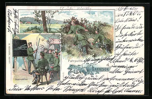AK Uniformierte Infanterie-Soldaten bei einer Übung, Instruktion