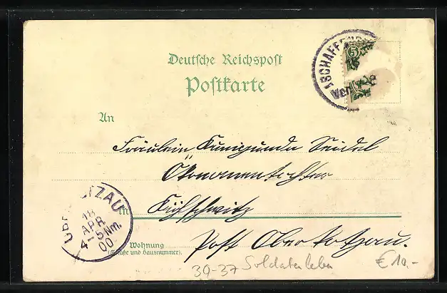 alte Ansichtskarte, gelaufen 1900, Briefmarke entfernt, guter Zustand