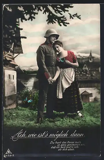 AK Uniformierter schweizer Soldat mit seiner Geliebten