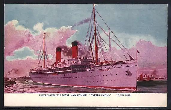 AK Union Castle Liner RMS Walmer Castle vor der Küste