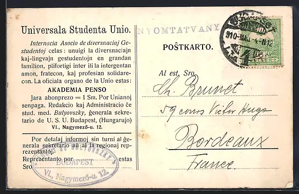Personenbezogene Daten auf der Rückseite der Karte wurden durch blauen Textmarker unkenntlich gemacht. Die blauen Stellen sind auf die Vorderseite durchgeweicht und wirken sich negativ auf das Postkartenfoto aus