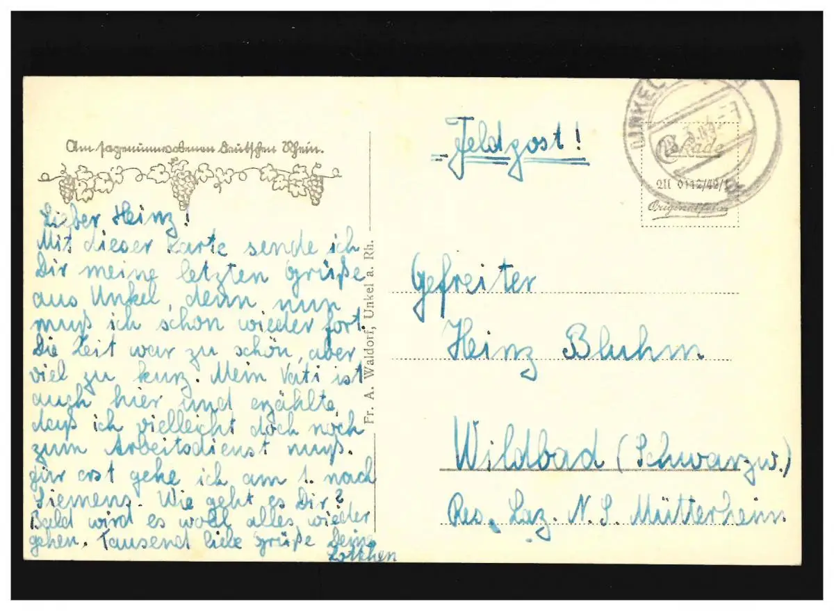 AK Unkel am Rhein, Panorama, Feldpost, Unkel 26.3.1943