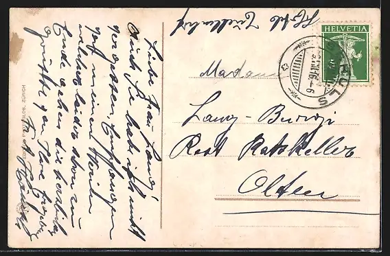 gelaufen 1916, Ecken bestoßen, guter Zustand