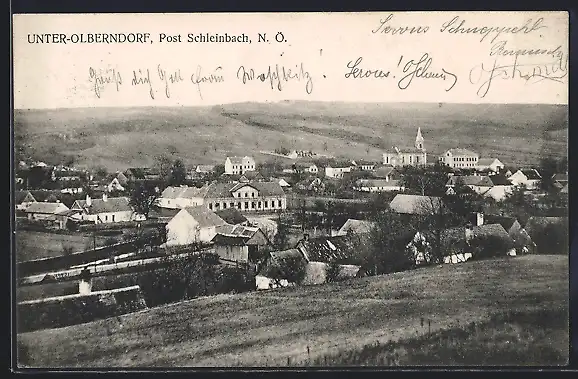 AK Unter-Olberndorf /Schleinbach, Ortsansicht von einen Berg aus