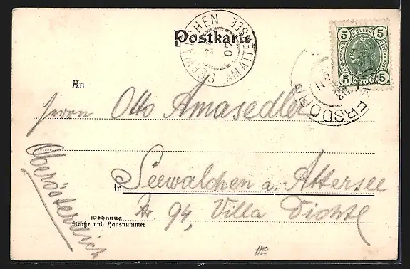 alte Ansichtskarte, gelaufen 1907, guter Zustand