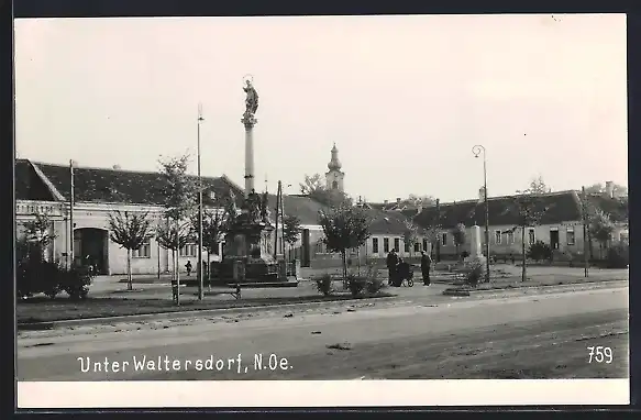 AK Unter Waltersdorf /N. Oe., Strassenpartie mit Denkmal
