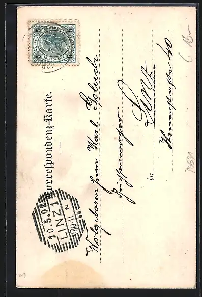 gelaufen 1902, leicht fleckig, guter Zustand