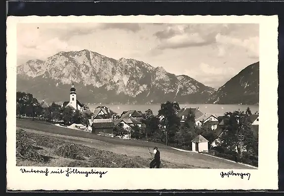 AK Unterach am Attersee, Panorama mit Blick nach dem Höllengebirge