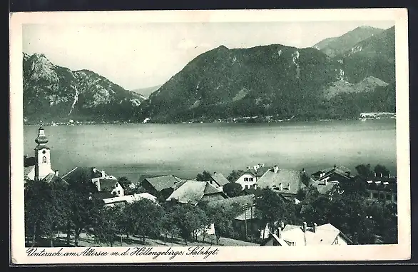 AK Unterach am Attersee, Teilansicht mit dem Höllengebirge