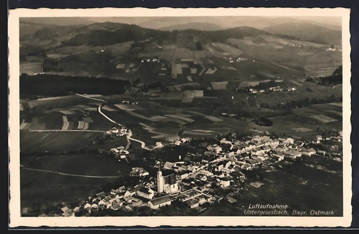 AK Untergriesbach /Bayr. Ostmark, Ortsansicht mit Kirche, Fliegeraufnahme