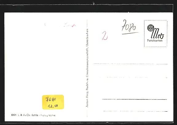alte Ansichtskarte, ungelaufen, rückseitig Klebe- und Papierreste, guter Zustand