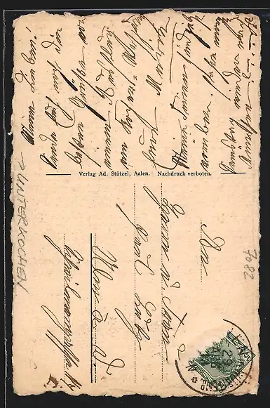 alte Ansichtskarte, gelaufen, Briefmarke entfernt, guter Zustand