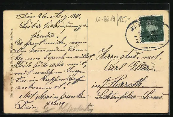 alte Ansichtskarte, gelaufen 1930, Stempelspur, guter Zustand