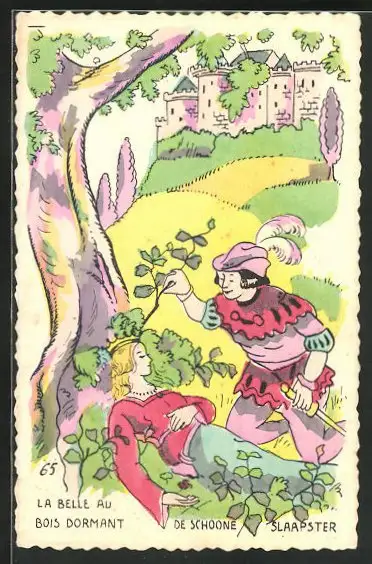 AK Unterm Baum schlafendes Dornröschen und der Prinz