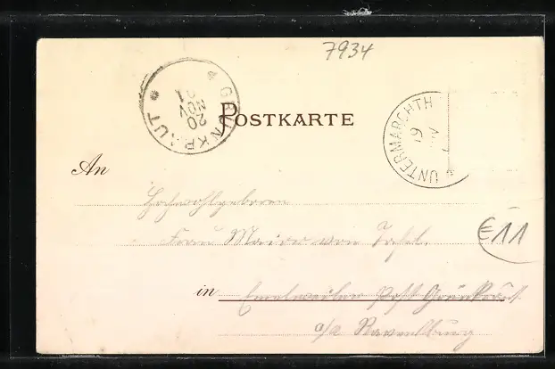 gelaufen 1901, Briefmarke entfernt, guter Zustand