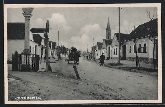 AK Unterpullendorf ND, Strassenpartie mit Pferdefuhrwerk