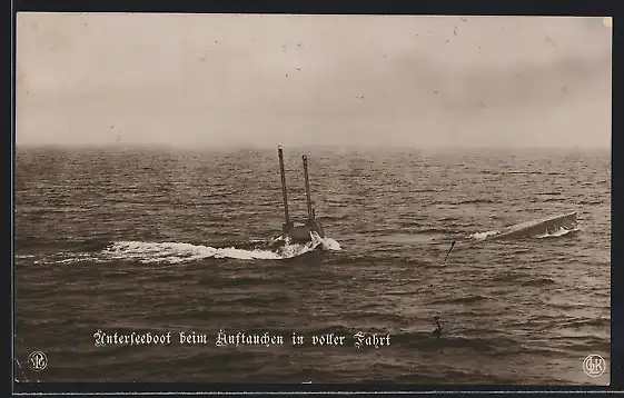 AK Unterseeboot beim Auftauchen in voller Fahrt