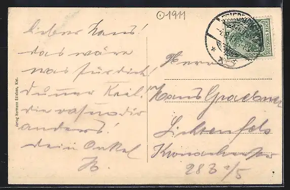alte Ansichtskarte, gelaufen 1911, Eckknick re. oben, guter Zustand
