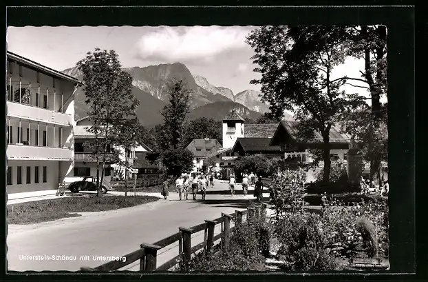 AK Unterstein-Schönau, Strassenpartie mit Untersberg