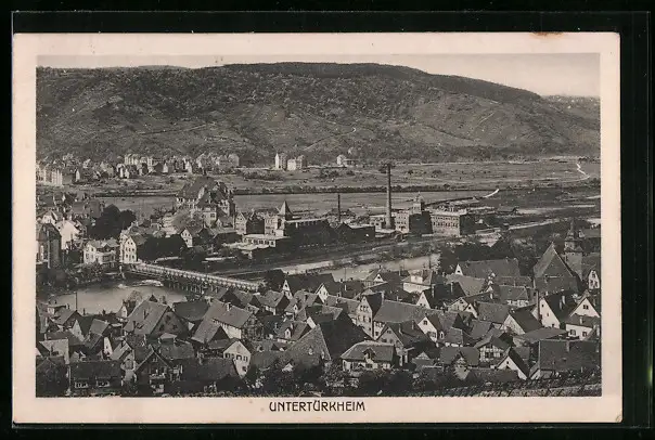 AK Untertürkheim, Stadtansicht aus der Vogelperspektive