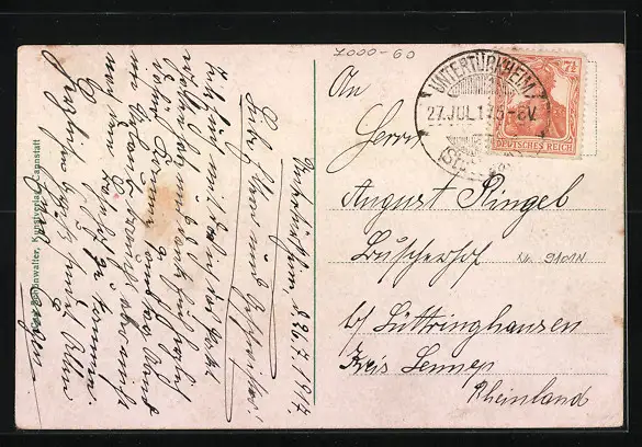 alte Ansichtskarte, gelaufen 1917, Eckknicke li., guter Zustand