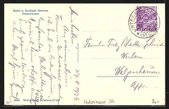 AK Unterwasser, Hotel und Kurhaus Sternen