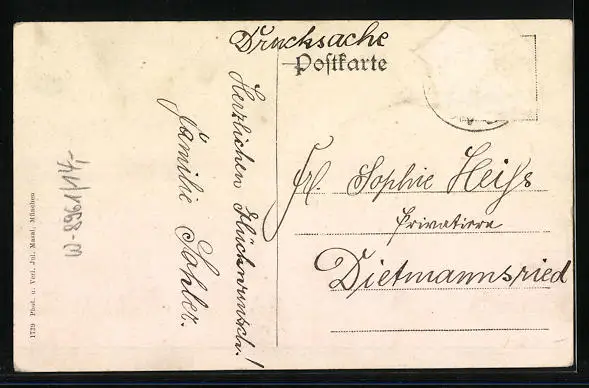 alte Ansichtskarte, gelaufen, Briefmarke entfernt, rückseitig Oberflächenschaden, guter Zustand