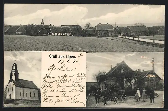 AK Upen, Totalansicht mit Kirche, Gasthaus