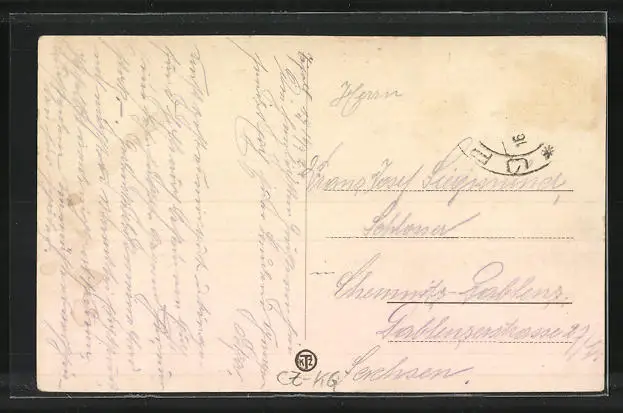 alte Ansichtskarte, gelaufen, Briefmarke entfernt, guter Zustand