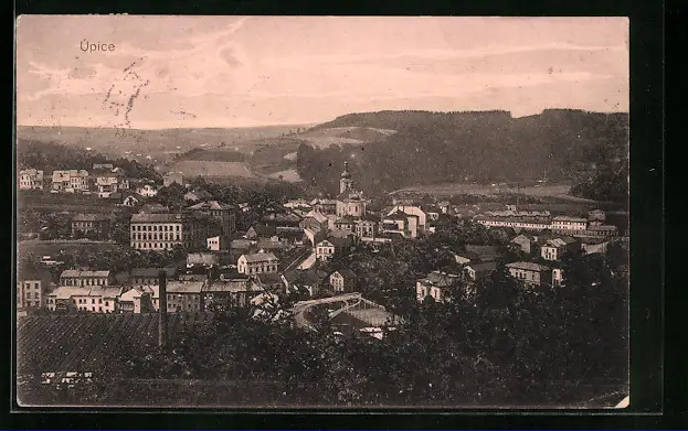 AK Úpice, Ortsansicht mit Blick ins Land
