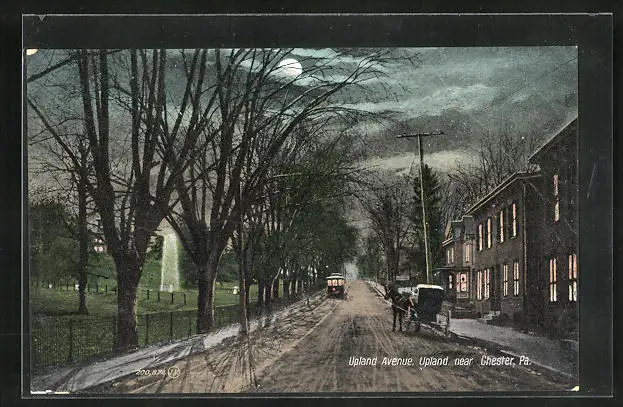 AK Upland near Chester, Pa., Upland Avenue, Strassenbahn
