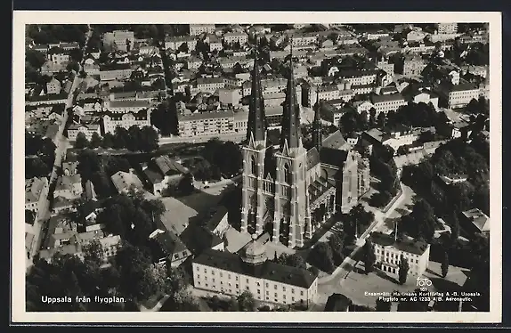 AK Uppsala, fran Flygplan, Fliegeraufnahme der Stadt mit dem Dom