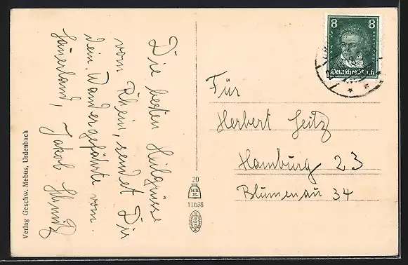 alte Ansichtskarte, gelaufen, Eckknick re. oben, Stempelspur, guter Zustand