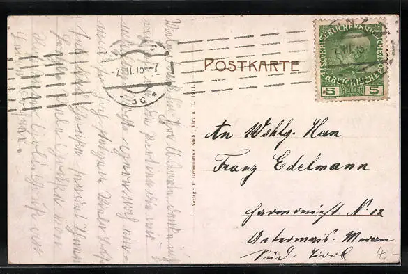 alte Ansichtskarte, gelaufen 1915, Stempelspur, guter Zustand